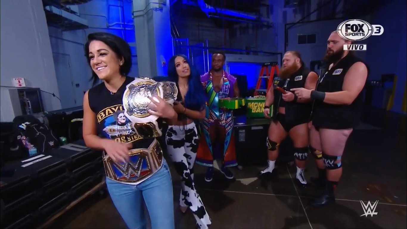 Bayley dice que han tenido una mala semana y que, luego de defender sus títulos en SummerSlam, ahora lamentan tener que defender sus títulos este domingo. Bayley intenta disculparse con Sasha por lo ocurrido y dice que es su culpa, su culpa por el hecho de haberla incitado a que rete a Asuka por el Campeonato Femenil Raw, ya que quería que tuviera los dos campeonatos al igual que ella.