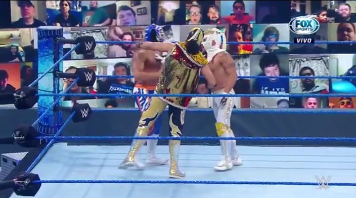 Cesaro es enviado contra las cuerdas con unas tijeras, y Nakamura interfiere. Aparecen Metalik y LInce Dorado y Kalisto se distrae. Cesaro aprovecha y con una enredadera logra la cuenta de tres.