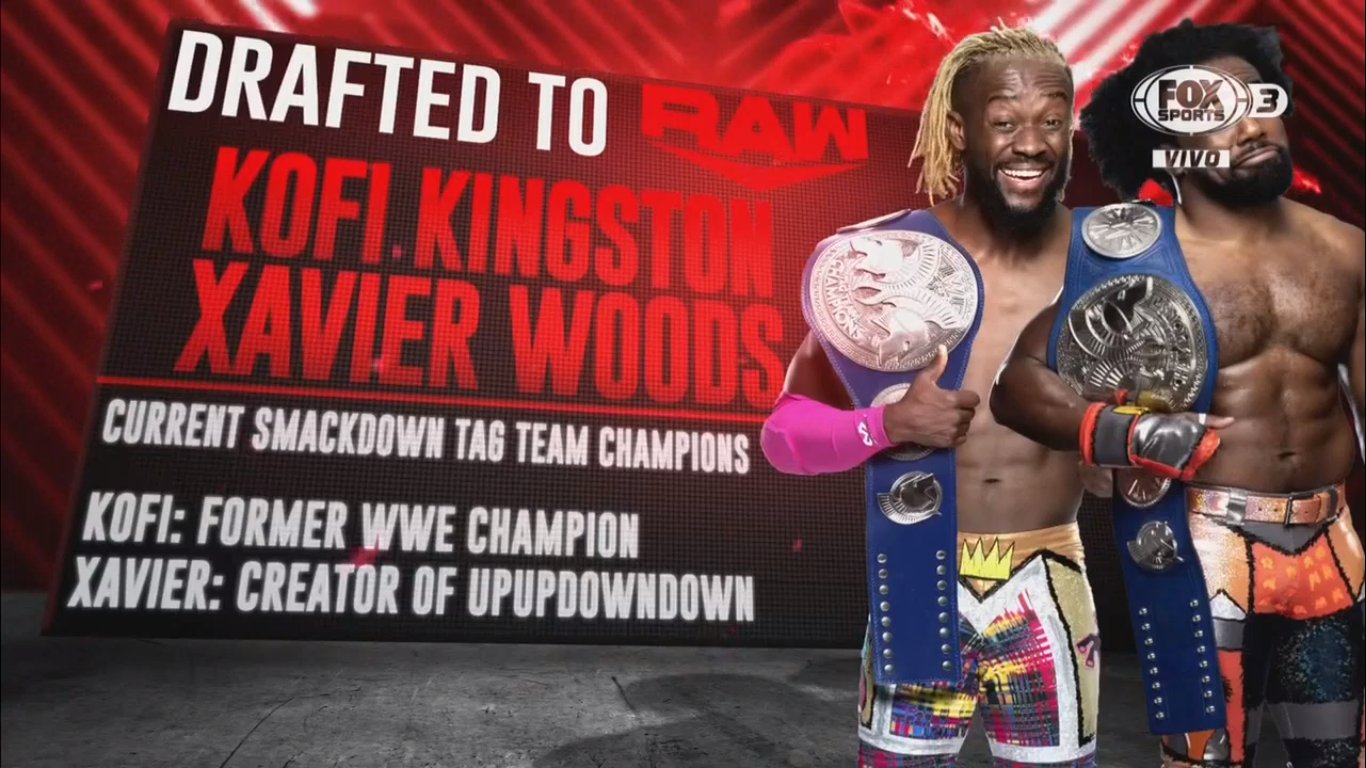 Stephanie McMahon está con la última ronda de esta noche y anuncia la primera selección de Raw de esta ronda: The New Day, pero solo Kofi Kingston y Xavier Woods.