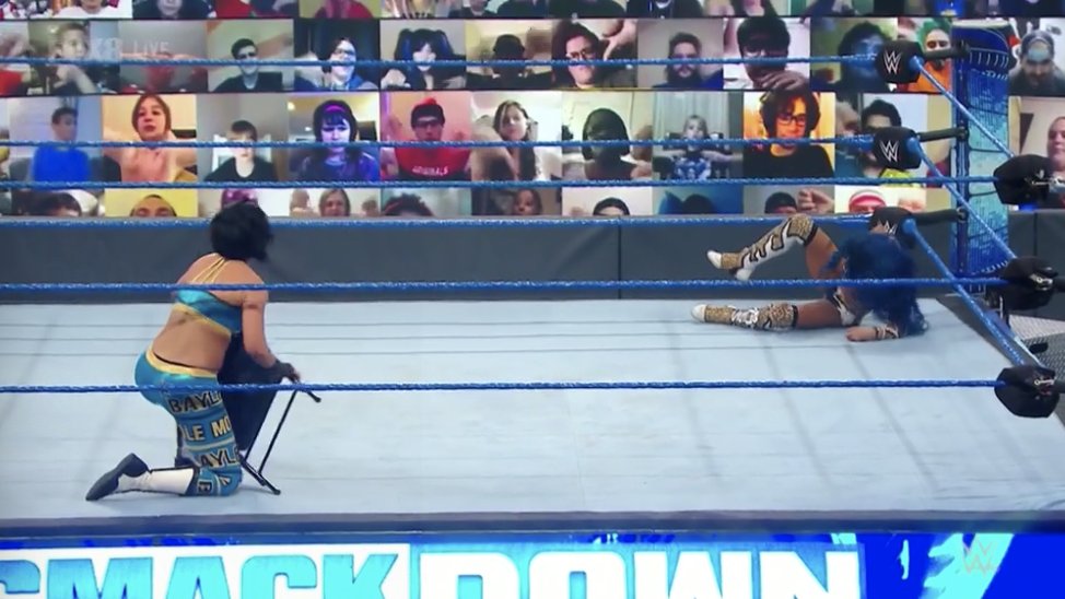 A Bayley no le importa el resultado y busca castigar a Sasha con la silla, pero esta esquiva el ataque y luego la sorprende, aplicándole el Meteora sobre la silla. Ahora aprovecha y empieza a castigarla con las sillas.