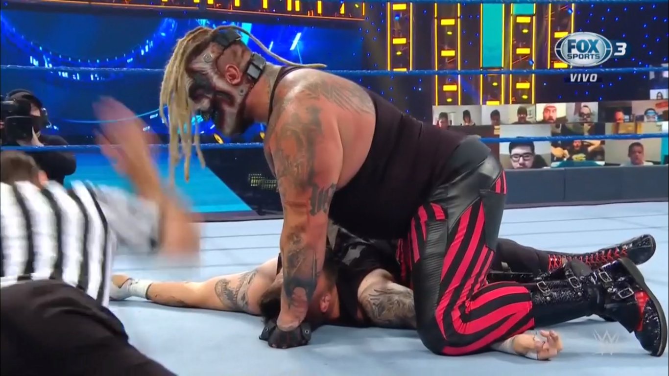 Al volver del corte comercial, Owens está dándole varios golpes a The Fiend, pero este responde con un Uranage. Luego, lo toma de la cabeza y le aplica una especie de guillotina usando su mano.