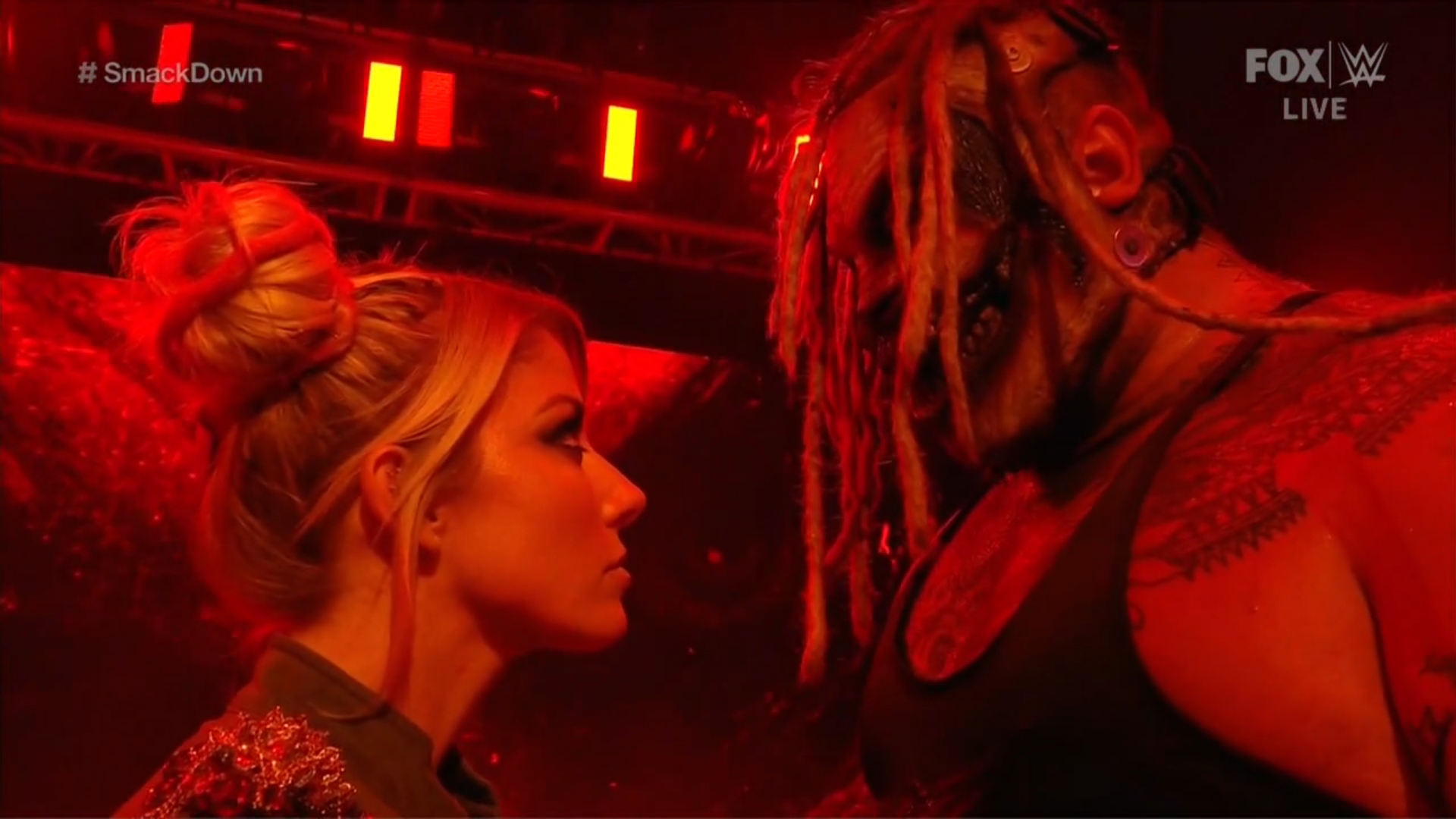 Al volver a encenderse las luces rojas, aparecen The Fiend con Alexa Bliss mirándose fijamente en la rampa de entrada y el programa sale del aire.