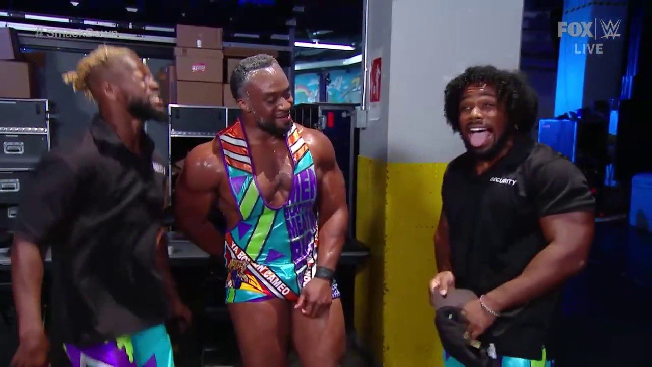Big E es entrevistado y felicitado por su victoria de esta noche y aparece Kofi Kingston y Xavier Woods y finalmente los tres están juntos de nuevo.