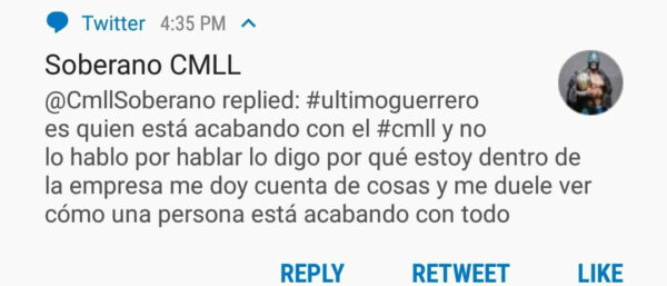 «Último Guerrero es quien está acabando con el CMLL y no lo hablo por hablar lo digo porque estoy dentro de la empresa me doy cuenta de cosas y me duele ver cómo una persona está acabando con todo«.