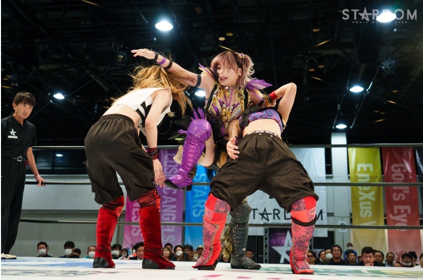 Cerrando la jornada, Cosmic Angels (Sayaka Kurara y Tam Nakano) doblegaron a God’s Eye (Saki Kashima t Syuri) contabilizando cuatro unidades.