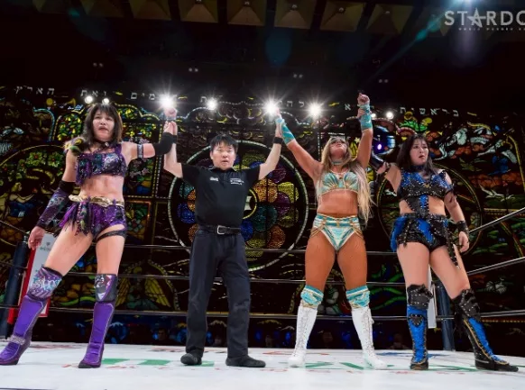 Siguió una intensa lucha entre God’s Eye (Saki Kashima y Syuri) contra HANAKO y Megan Bayne que no tuvo definición tras quince minutos de acciones.