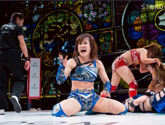 2. 3 Way Battle: Mei Seira venció a Yuna Mizumori y Momo Kohgo (5:44) con la Nagareboshi sobre Mizumori.