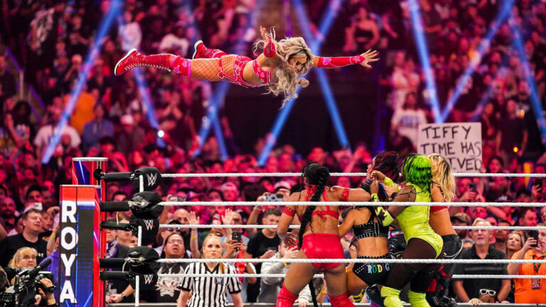 Al contrario que Bron Breakker, Tiffany Stratton todavía no ha sido ascendida al elenco principal de WWE. Al menos no se anunció hasta ahora, ¿quizá sucederá en SmackDown? Pero la luchadora de NXT también participó en el Royal Rumble 2024. No tuvo una gran actuación, ni mucho menos al nivel de lo que se espera de su futuro como Superestrella, pero entró como número 29 en la batalla real de 30 luchadoras, estuvo casi 7 minutos sobre el ring y eliminó a Roxanne Pérez.