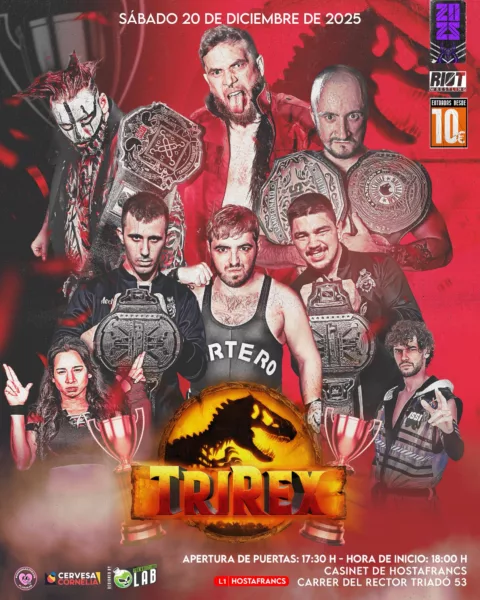Celebrado el pasado 20 de diciembre desde el Casinet d’Hostafrancs en Barcelona (Cataluña, España), RIOT: TriRex presentó siete combates.