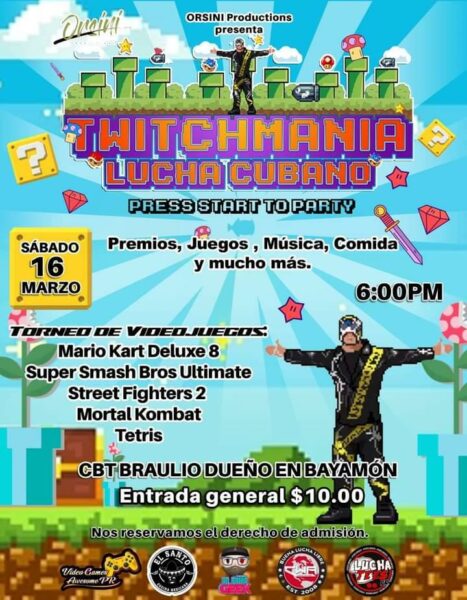 Date cita el Sábado 16 de Marzo del 2024 en la Cancha Bajo Techo Braulio Dueño Colón en Bayamón y disfruta totalmente en familia desde las 6:00 de la tarde de un evento único al estilo del hombre de Lucha Cubano, Rodrigo García.