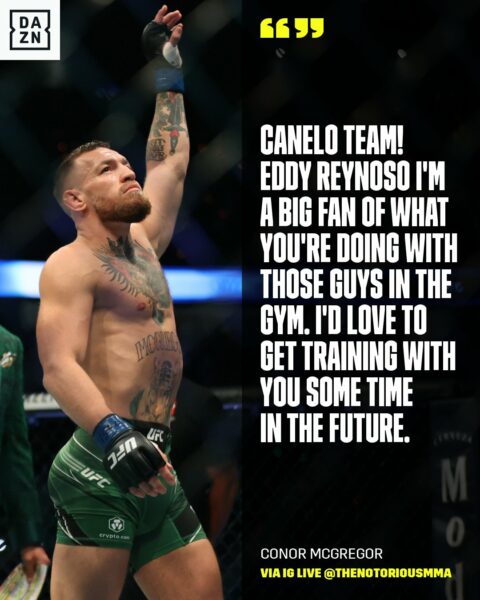 Un post hecho por DAZN, la plataforma de streaming de boxeo, dejó entrever que existe la posibilidad de que Conor McGregor trabaje con el Canelo Team.