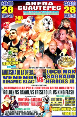 La Arena Cuautepec, uno de los últimos bastiones de la lucha libre independiente en la capital mexicana, presentará un interesante cartel el próximo sábado 28 de marzo. En el evento estelar, se presentará el rudo panameño Veneno, quien seguramente logrará prender al público con su usual actitud. La tercia la completarán el técnico Dynamic Black
