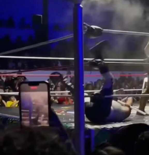 El luchador Urus sufrió un aparatoso accidente durante un combate de lucha extrema.