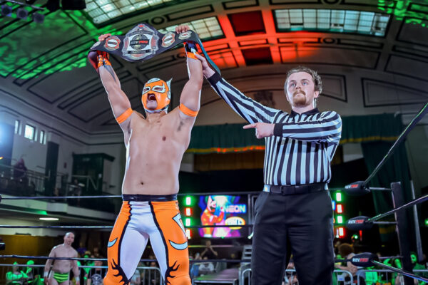 Neón consiguió coronarse durante la gira Fantasticamanía, llevándose uno de los títulos de RevPro.