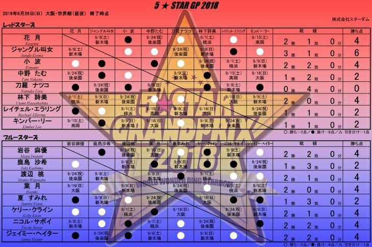Dio comienzo la séptima del torneo «5*Star GP 2018«, la competencia anual individual organizada por Stardom, donde compiten 16 luchadoras divididas en dos grupos. Fue en el Shin-Kiba 1st RING de Tokio donde comenzaron los combates. En el grupo Red Stars, Kimber Lee sumó sus primeros puntos a costa de Natsuko Tora. La debutante Utami Hayashishita quien hizo