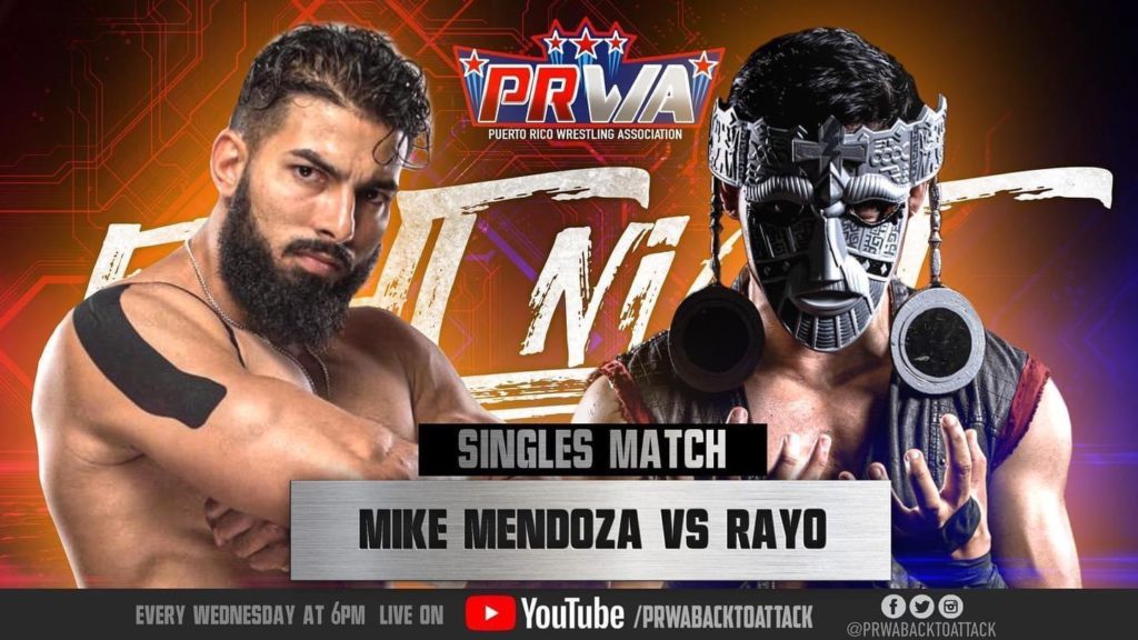 En esta octava edición de PRWA (Puerto Rico Wrestling Association) Fight Night, disfrutamos del encuentro final por el Campeonato Peso Completo de la PRWA entre el boricua, Dante Caballero y el peruano Rayo. El próximo miércoles 16 de Diciembre tendremos otro programa con más acción.