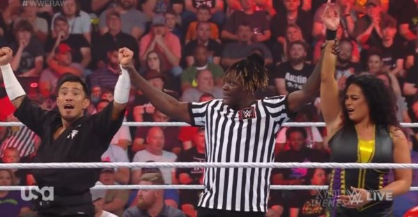 Akira Tozawa le dio la victoria a su novia Tamina sobre Reggie y Dana Brooke.