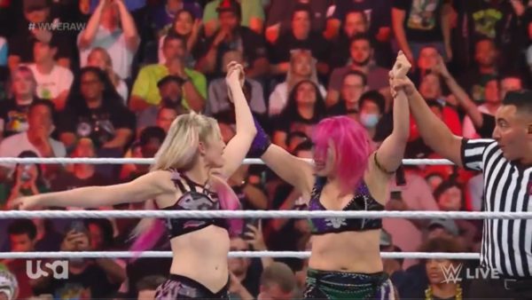 En una lucha que, al parecer, tuvo un doble final dentro del ring, Alexa Bliss, Asuka y Dana Brooke vencieron a Nikki ASH, Doudrop y Tamina Snuka. El Campeonato 24/7 WWE fue una papa caliente.