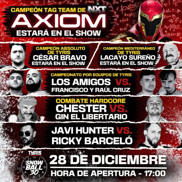 Celebrado el pasado 28 de diciembre desde las instalaciones de Tyris Wrestling en Benetússer (Valencia, España), Snowball 30 presentó seis combates.