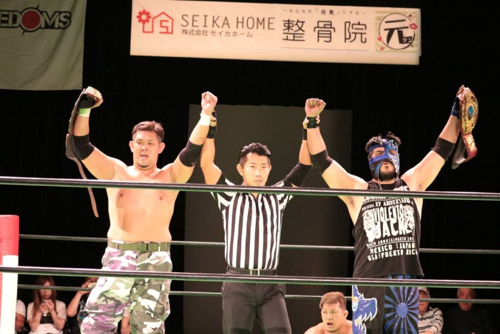 La empresa independiente Freedoms se presentó en el Moriguchi Citizen Gymnasium de Osaka, donde el mexicano Violento Jack y Daisuke Masaoka, tiñeron de sangre el ring. El veterano gladiador Takashi Sasaki sostuvo un combate individual ante Dyna Mido a quien superó en casi 11 minutos de recias acciones. En lucha en estilo callejero, se midieron las