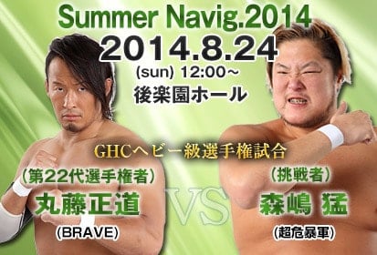 Por Darkangelita. Estos son los resultados de la función celebrada el pasado 08 de agosto en un conocido hotel de Aichi, donde la empresa Pro Wrestling NOAH llevó a cabo una fecha más de la gira «Summer Navigation 2014» en donde se efectuó el match preludio al combate por el GHC Heavyweight title entre Naomichi