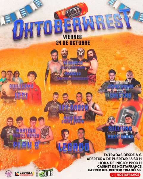 Celebrado el pasado viernes 24 de octubre desde el Casinet d’Hostafrancs en Barcelona (Cataluña, España), RIOT: Oktoberwrest presentó siete combates.