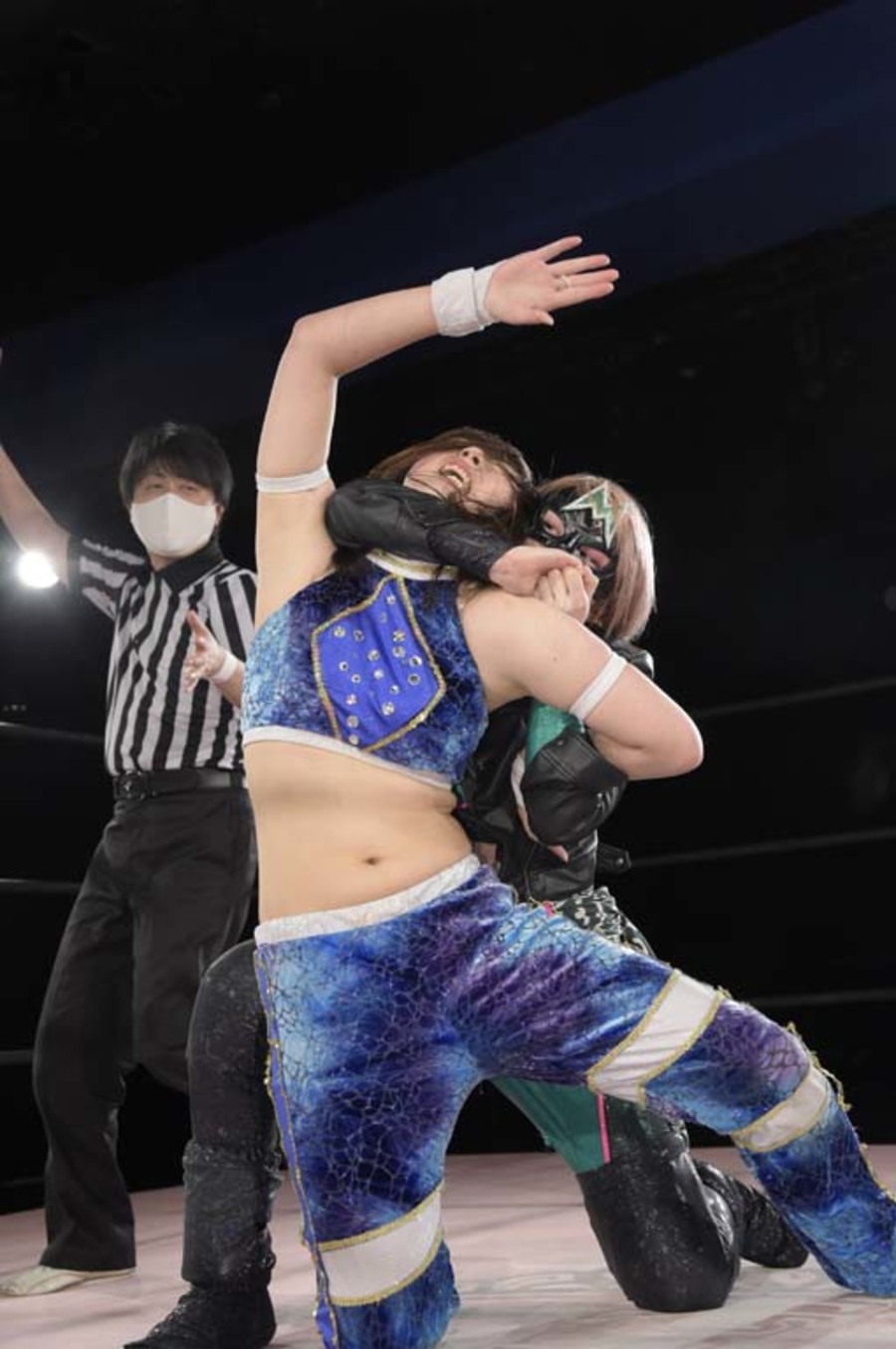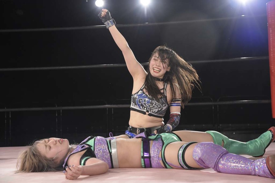 6. Rika Tatsumi y Miu Watanabe derrotaron a Yuna Manase y Raku (11:15) con un Tear Drop de Watanabe sobre Raku.
