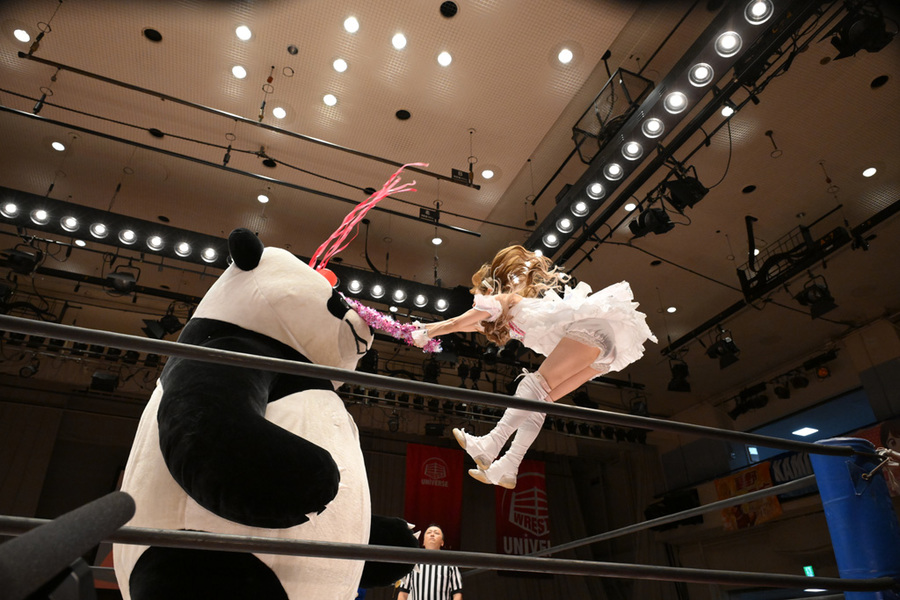 En un divertido choque de parejas, Mahiro Kiryu y Mizuki se enfrentaron a Andre The Giant Panda y Shino Suzuki. Mizuki llevó un Pico Pico Hammer al ring, saltó de la cuerda superior y conectó un golpe directo en la cabeza del panda gigante. Mahiro Kiryu estaba horrorizada por las acciones de su compañera y obligó a Mizuki a disculparse. Andre se recuperó y derribó a Kiryu con un Spinning Back Fist. Shino Suzuki entró para hacer el trabajo pesado mientras Andre se recuperaba fuera del ring. Regresó, pero Kiryu lo interrumpió y exigió que él también se disculpara con todos. En respuesta, le dio un cabezazo a Kiryu. Andreza intentó otro cabezazo que no alcanzó a Mizuki y golpeó a Suzuki en su lugar. Mizuki sacó una cuerda y corrió en círculos alrededor de Andre para hacerlo tropezar. Luego conectó un Diving Foot Stomp e hizo que Kiryu mantuviera al panda en el suelo para poder inmovilizarlo y ganar.