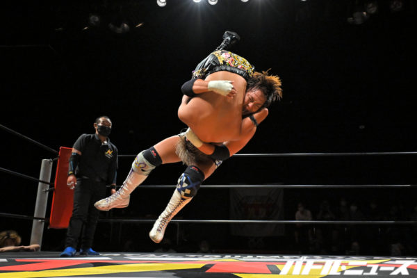 3. Guts Ishijima venció a Mataro Aoki (12:32) con un Ghost Buster.