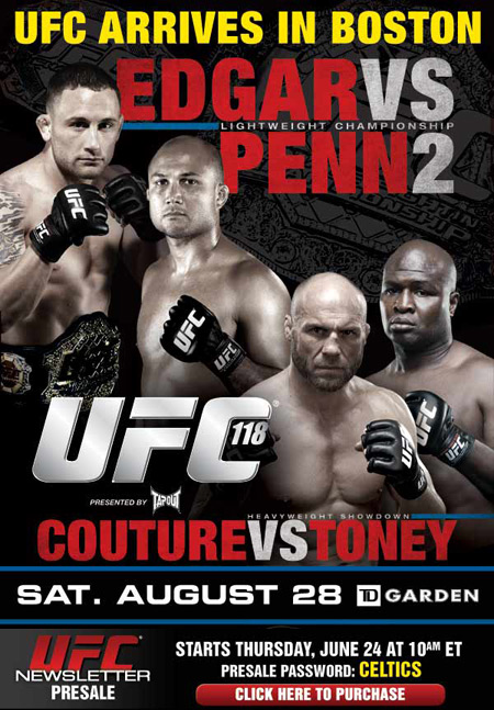 espero sea una gran nohe, a edgar lo veo muy comprometido con este remach en contra de penn, en mi opinion se iran a decision y ganara nuevamente, en la pelea de the natural contra toney, veo mas fuerte a toney, aunque a muchos les paresa que couture tiene la experiencia en lucha grecoromana pero sinceramente lo veo muy debil en contra de un boxeador ya que cuando peleo en contra de minotauro cayo a la lona en repetidas ocaciones por golpes en su pera, esto quiere decir que esta llegando a tener una pera de cristal como se dice en el box, y eso es lo mas traumatico, el llegar a pelea con el apaga luces de toney es muy riesgoso, tomen en cuenta amigos que toney ya tiene en su cabeza que couture tratara soloamente de derribarlo y eso basta para quer toney lo noquee lo mas rapido posible, me cae bien couture y conosco muy bien a toney por sus videos en el box, sinceramente espero no caiga al hospital couture… buena suerte