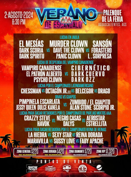 Siguiendo su camino a Triplemanía XXXII en la Ciudad de México, el próximo 2 de agosto en el Palenque de la Feria en Aguascalientes, se vivirá Verano de Escándalo, evento donde se definirá el camino al evento magno de Lucha Libre AAA.