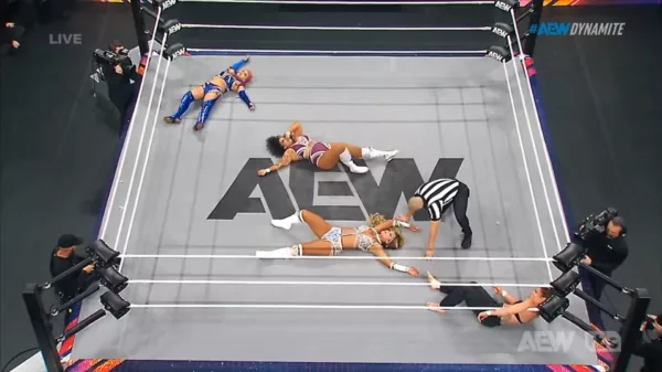 Marina sacó rápidamente a Mina del ring y se unió a Megan para atacar a la campeona. Willow reaccionó expulsándolas y lanzándose con un Cannonball hacia el exterior. Mina respondió volando desde el poste con un crossbody sobre todas sus rivales.