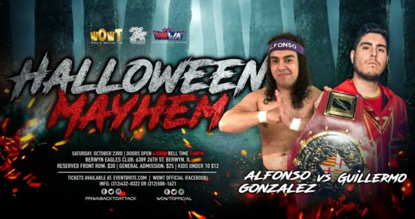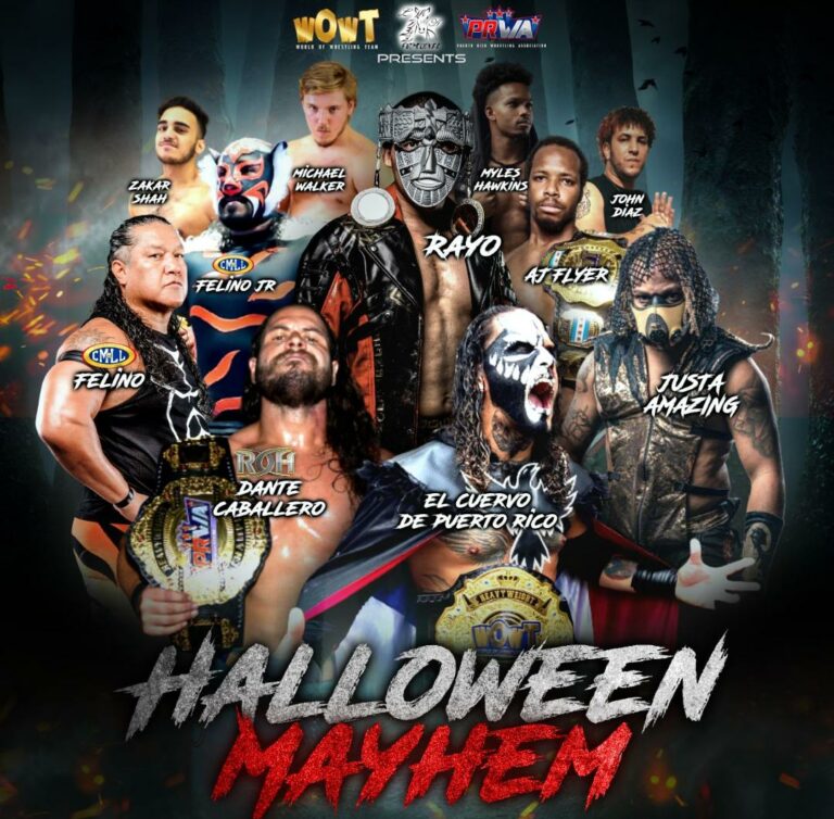 La empresa WOWT (World Of Wrestling Team) tendrá su próximo evento el 23 de Octubre en Halloween Mayhem, donde el nuevo campeón peso completo de la empresa, El Cuervo de Puerto Rico se enfrentara al Felino Jr directamente desde el CMLL. Por otra parte la leyenda de la lucha libre mexicana, «El Luchador Mas Rapido del Mundo» Felino llega directamente del CMLL a hacer su debut en la empresa WOWT en busca del oro máximo de la empresa PRWA frente al campeón, Dante Caballero.