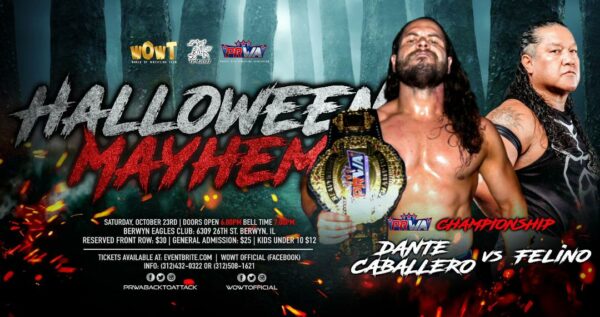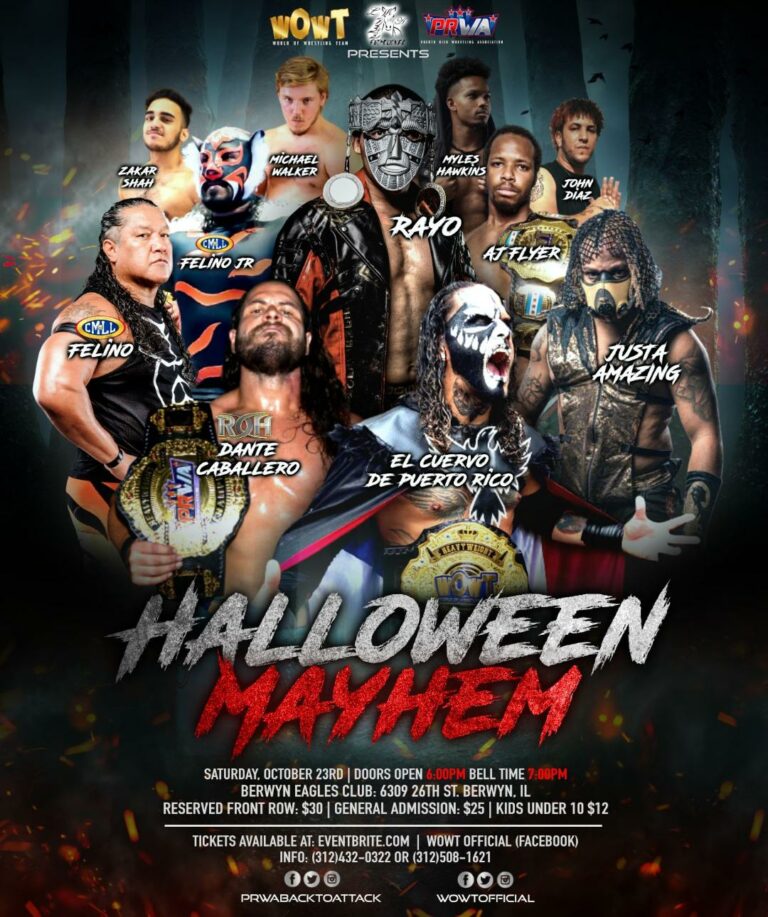La empresa WOWT (World Of Wrestling Team) tendrá su próximo evento el 23 de Octubre en Halloween Mayhem, donde el nuevo campeón peso completo de la empresa, El Cuervo de Puerto Rico se enfrentara al Felino Jr directamente desde el CMLL.