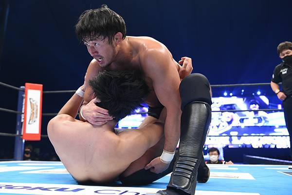Esto ocurrió en la cuarta lucha de la cartelera enfrentando a Ren Narita, adversario que se dio a conocer momentos antes del comienzo de la lucha. Ambos gladiadores portaron únicamente el calzón negro característico de los estudiantes del Dojo de NJPW. Hay que recordar que Narita es miembro del LA Dojo en la sede que la empresa del león tienen en los Estados Unidos.