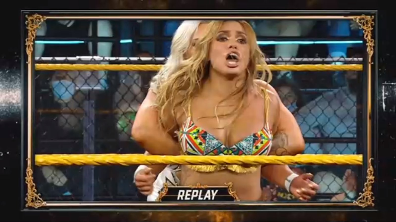 Ember Moon y Shotzi Blackheart aparecieron, y lejos de ayudar a Shirai y Stark, decidieron atacar a cuanta rival se le pusiera encima. Samoa Joe llegó a impartir orden, y con varios oficiales controlaron la situación.