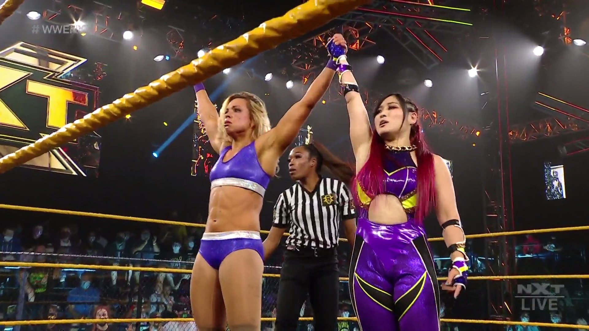 ► Tras bastidores, Zoey Stark fue entrevistada y elogió a Io Shirai, con quien formará equipo. Shirai, en cambio le dijo que la respetaba, pero que no le caía bien. Para Stark, eso fue suficiente.