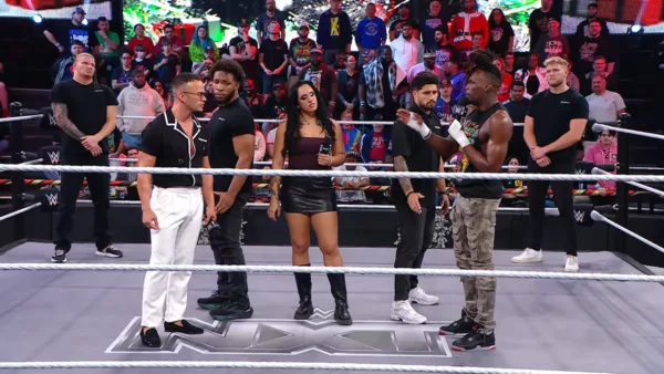 Ava, reforzada con varios miembros de seguridad, llamaron a Je’Von Evans y Ricky Saints al ring para otro cara a cara. Je’Von se preguntaba por qué seguían hablando y no golpeándose, mientras que Ricky le dijo que era demasiado impulsivo y que no tenía la suficiente responsabilidad para ser la cara de la marca, y que necesitaba ser moldeado.