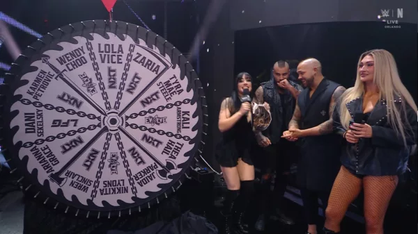 La campeona dijo que trajo la rueda que no vimos en Halloween Havoc, y la favorecida será la que la desafíe a un combate titular esta noche. Sin embargo, llamó la atención que el nombre de Izzi no estaba en la rueda y Tatum dijo que no estaba porque no quería pelear con su amiga y decidió girar la ruleta, saliendo el nombre de Lola Vice.
