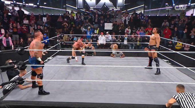 Ridge respondió y arrojó a Trick contra las escaleras metálicas. Luego, le aplicó una DDT contra la mesa. El Campeón NXT tuvo que ser sacado en camilla.