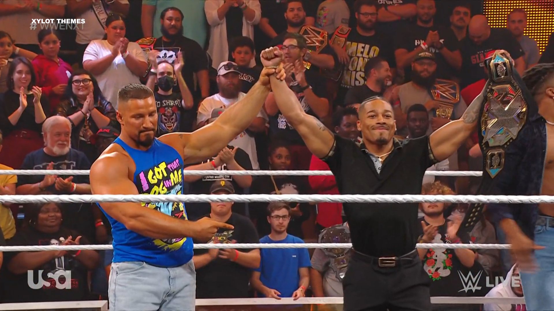 Sin mayor demora, llamó a Bron Breakker y este apareció. Tras intercambiar palabras de respeto, Bron dijo que le pasaba la antorcha a Carmelo de la misma manera que Tommaso Ciampa hizo con él y, aunque no sabe qué hará en su futuro, pidió a todos un aplauso para Carmelo. Williams hizo lo propio.
