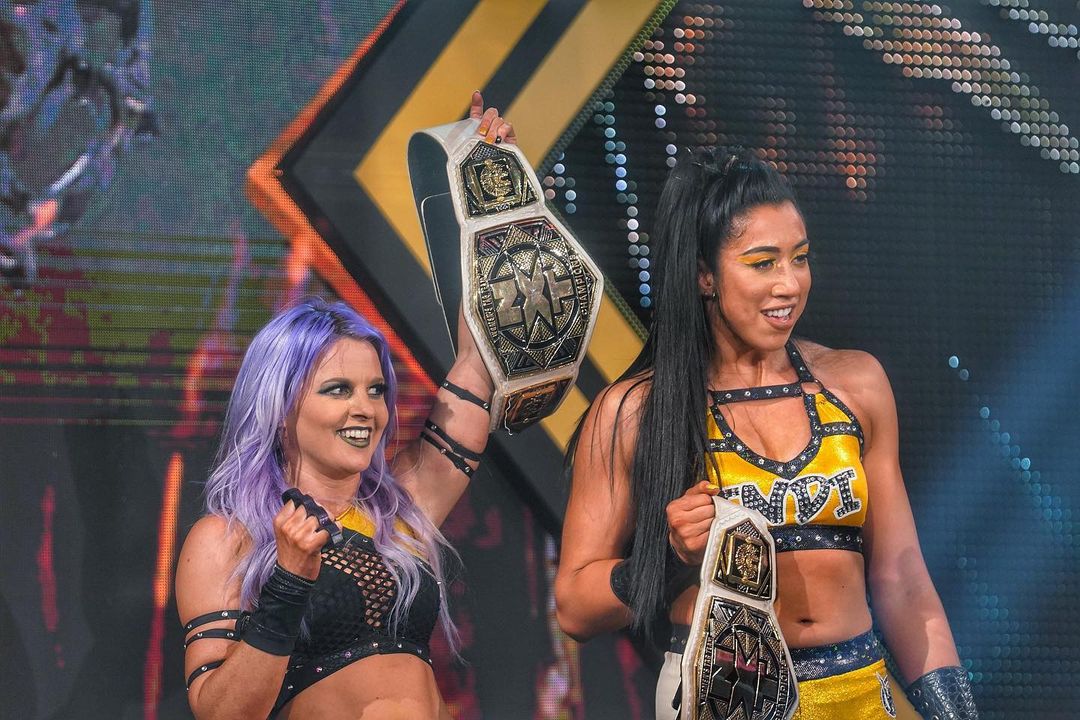 Candice LeRae e Indi Hartwell se llevan la victoria en un muy buen combate para coronarse como las NUEVAS Campeonas de Parejas NXT. Fue un combate muy arriesgado, pero ahora The Way consigue más oro.