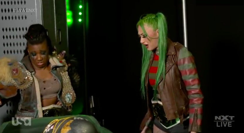 Ember y Shotzi aparecieron disfrazadas como Jason y Freddy Kruger, respectivamente.