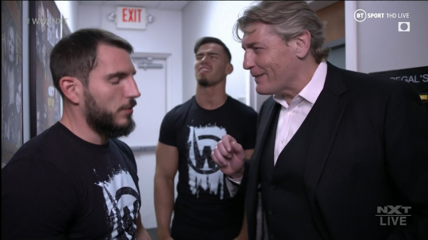 Johnny Gargano y Austin Theory interrumpen una reunión de William Regal, pero el Campeón Norteamericano NXT decide que hablará con él más tarde. Mientras tanto, Theory intenta coquetear con Scarlett mirándole «las uñas», y Gargano regresa para sacarlo de allí antes de que se meta en un lío innecesario.