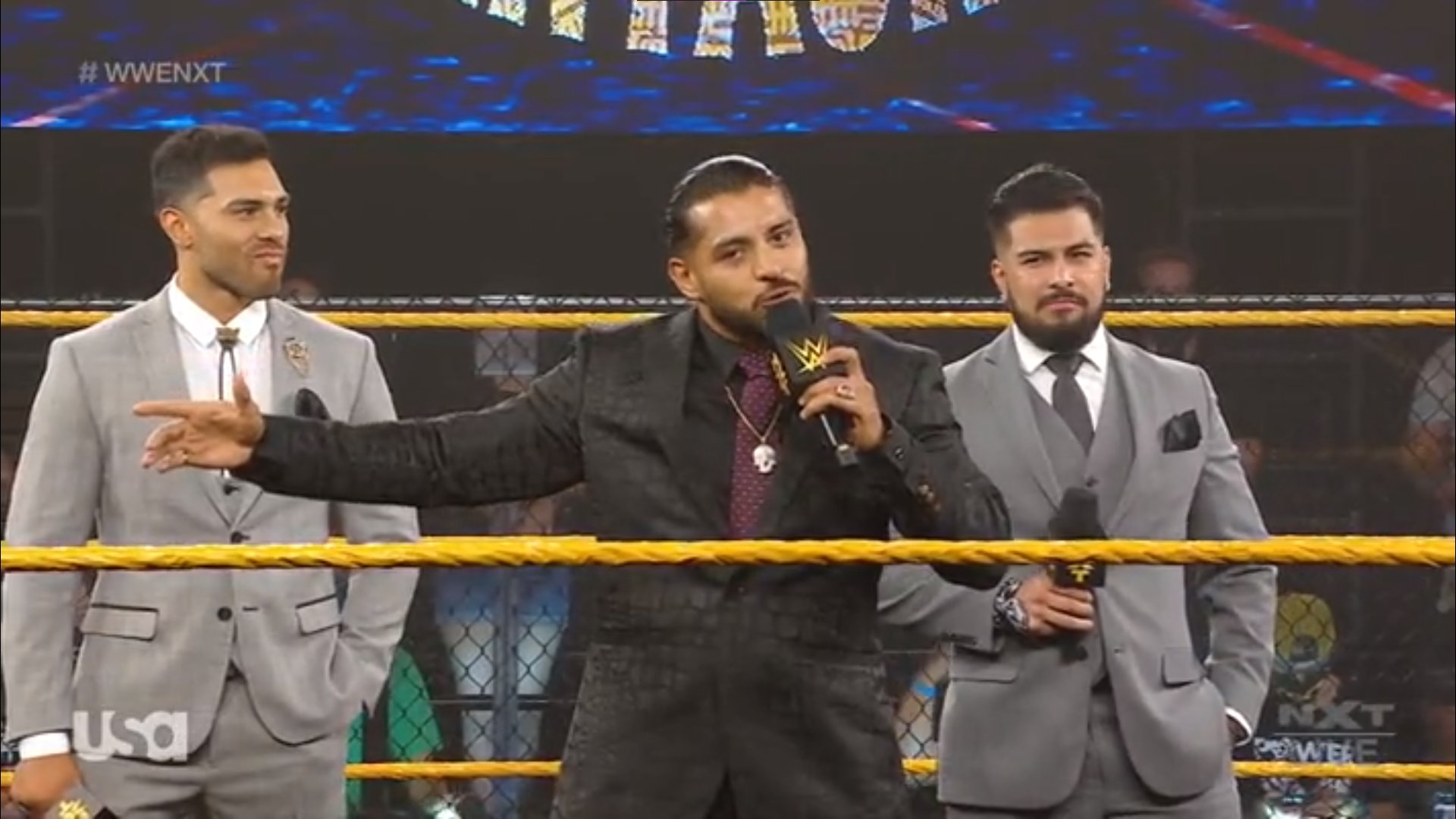 Mendoza y Wilde toman la palabra y dicen que MSK no los han derrotado, pero ellos si lo hicieron la semana pasada y quieren una lucha por el Campeonato de Parejas NXT. Lo curioso es que el público está con ellos.