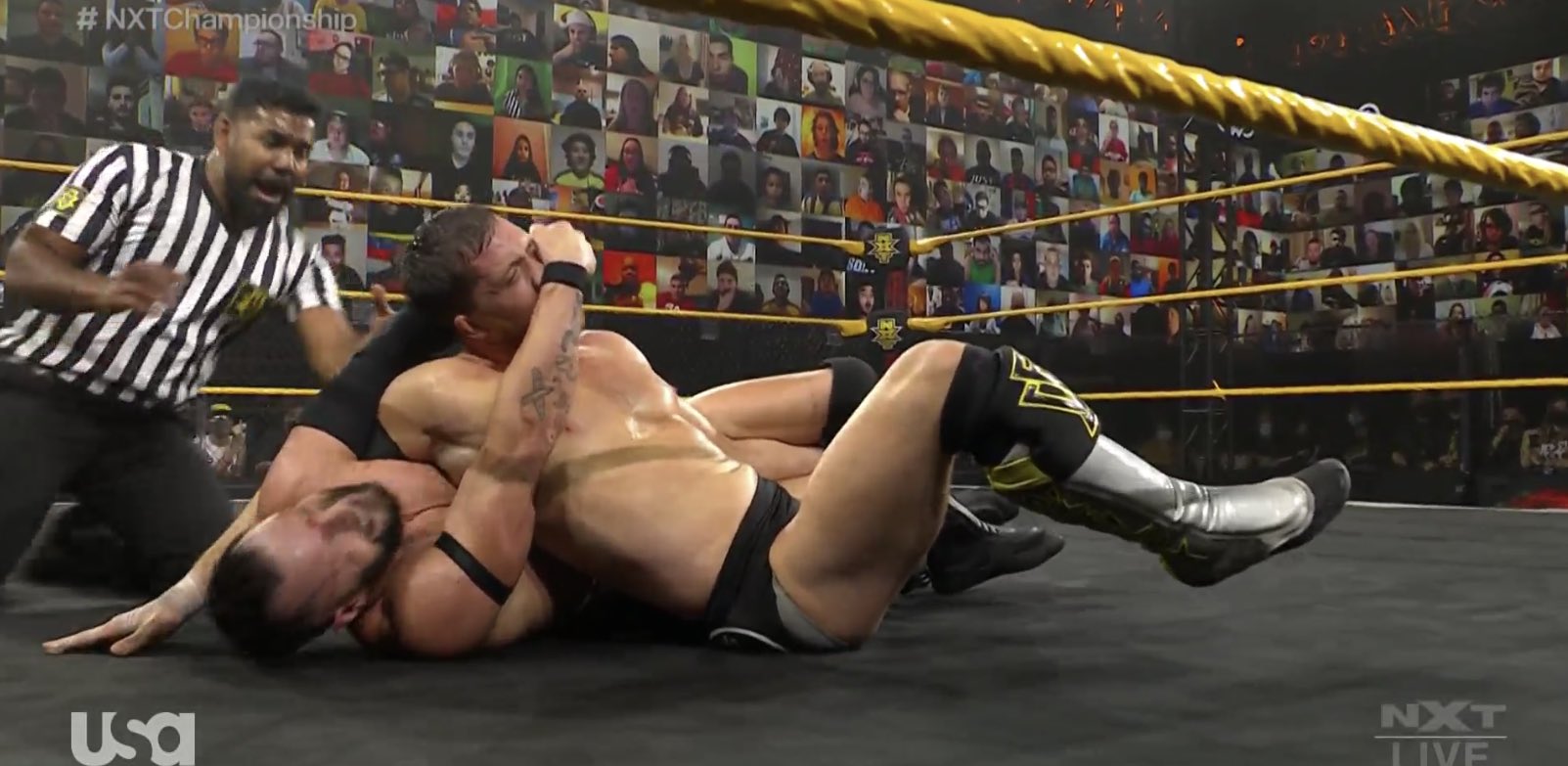 Finalmente, llegó el estelar sin corte comercial. ¿Superarán lo de NXT TakeOver 31?. Pete Dunne está entre el público, muy interesado por el desenlace.