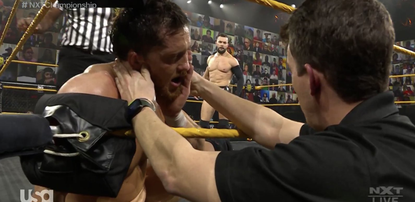 Balor le aplica un tirabuzón a O’Reilly, pero este logra llegar a las cuerdas usando su boca y Balor debe soltarlo; sin embargo, lo patea y hace que impacte contra la cuerda. Inmediatamente el réferi pide asistencia médica.