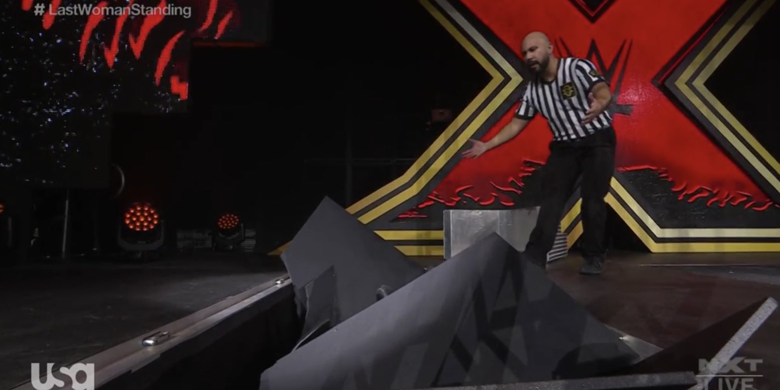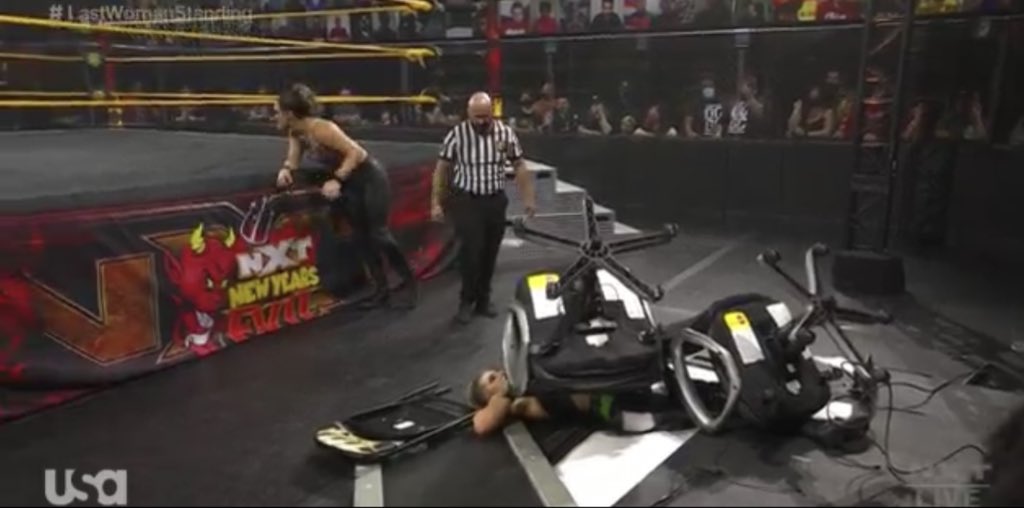 González utiliza el pedazo de reja para atacar a Ripley, pero esta agarra el martillo con el que se toca la campana; sin embargo, González es quien bloquea el ataque y logra hacer que su rival «toque» la campana. Tras el conteo, González arroja a Ripley contra la mesa de comentaristas y empieza a arrojarle un poco de los escombros para evitar que se levante. Sin embargo, la ex Campeona NXT se reincorpora a la cuenta de ocho.