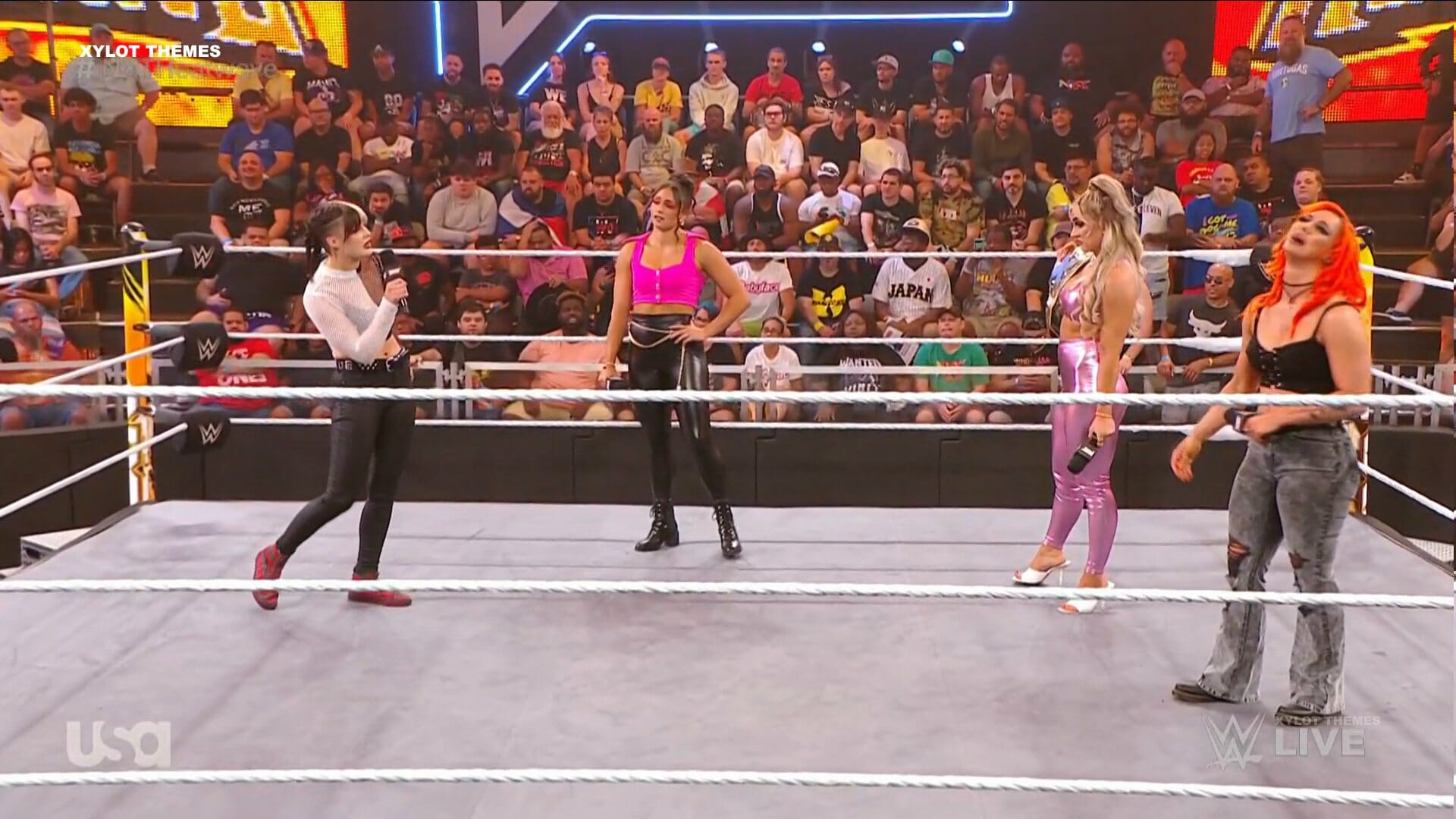 Continuó la discusión entre las cuatro, hasta que Roxanne Pérez llegó para recordarle a Blair Davenport que la derrotó en NXT The Great American Bash y fue directo a Tiffany para lanzarle un golpe, y se armó el relajo entre las cuatro posibles retadoras.