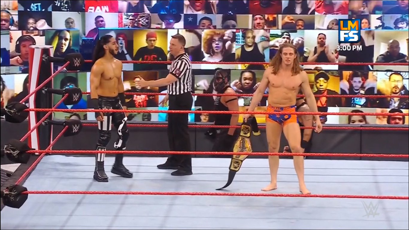 Ahora aparece The Miz y dice que decidió aparecer luego de escuchar su discurso. Tras adularlo un poco, e imitar un poco a Stone Cold, le propone una lucha titular en WrestleMania 37, pidiéndole que programe el cambio a la lucha ya oficializada con McIntyre. Luego, le recuerda lo que ocurrió durante el día que perdió el título y lo invita a reflexionar, ya que nunca lo ha enfrentado estando al 100%.